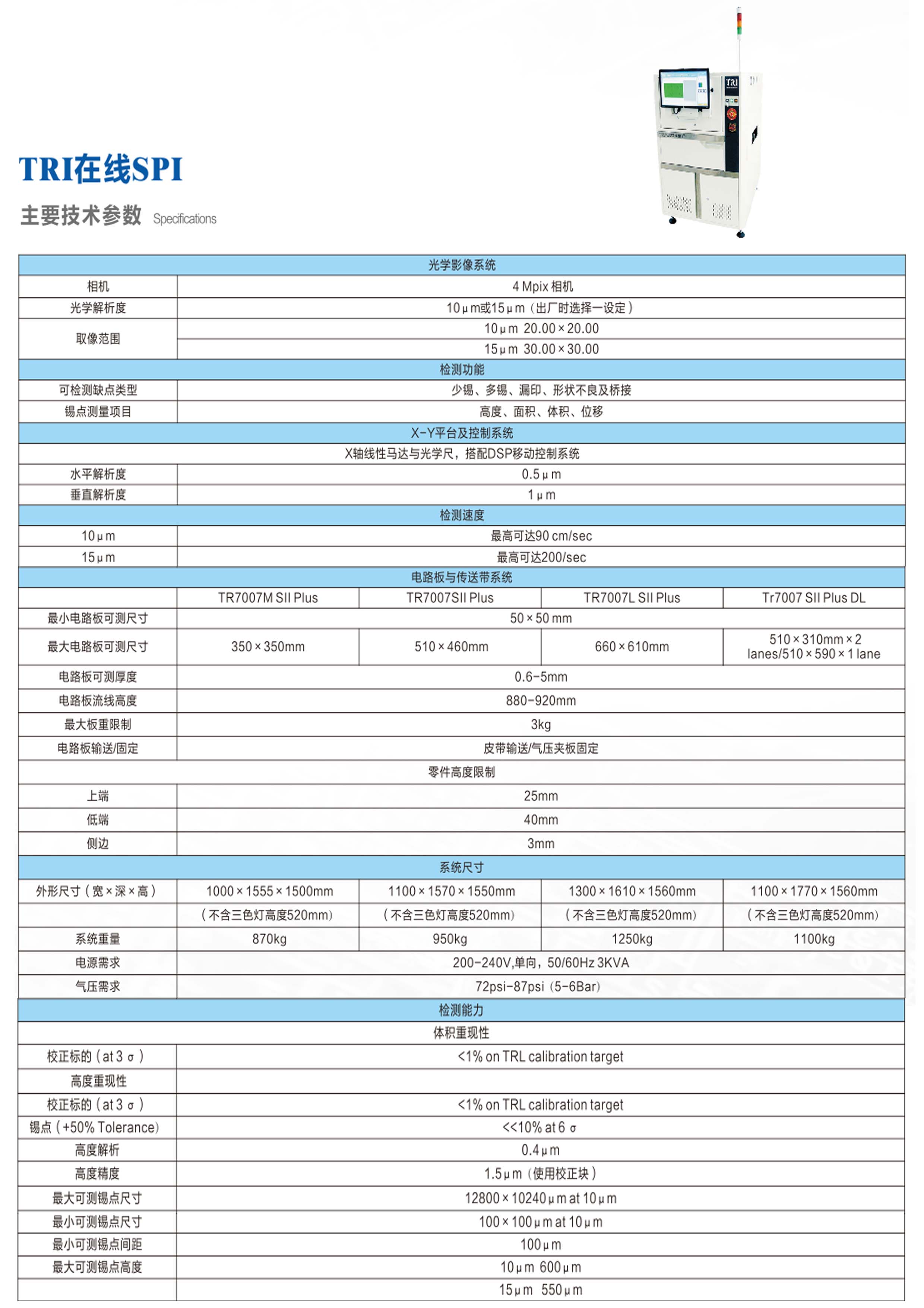 專業代理臺灣德律SPI,主要型號如下:德律3D TR7007 SII Plus,德律TR7007M SII Plus,德律SPITR7007L SII Plus: